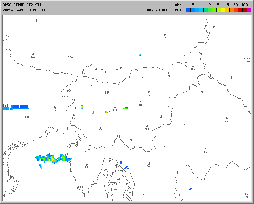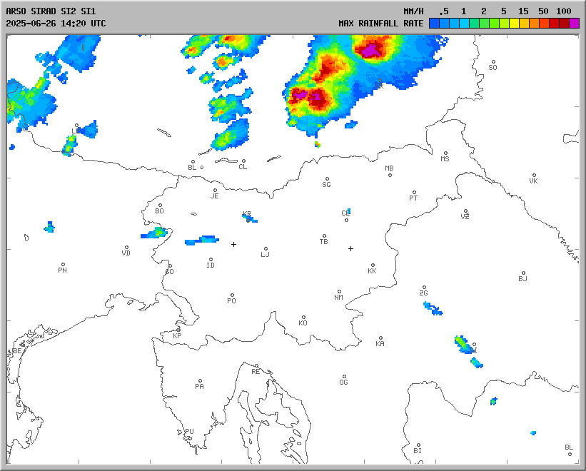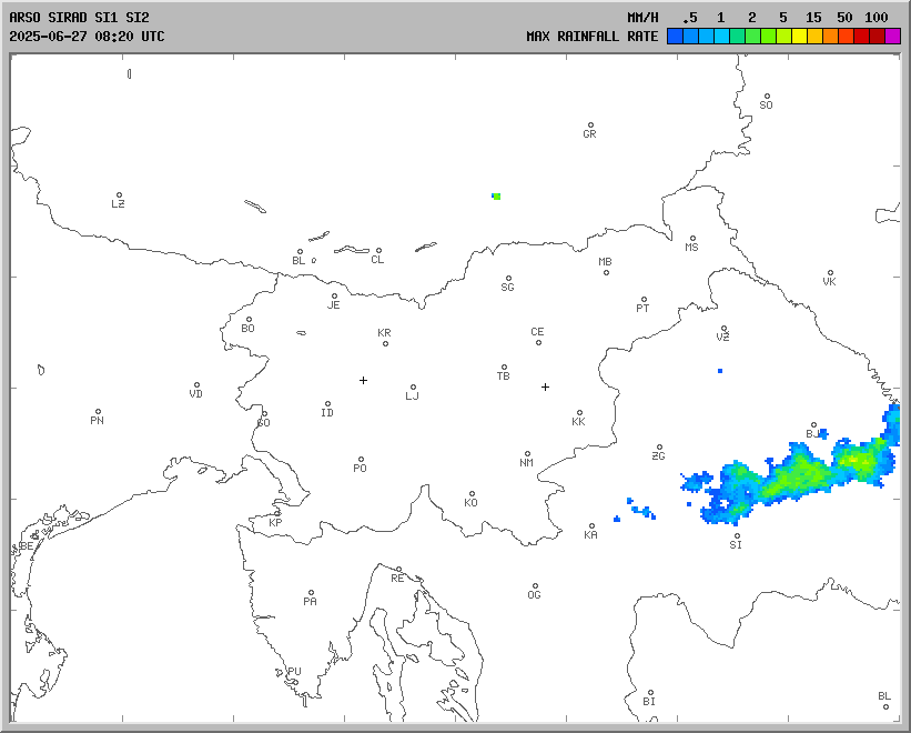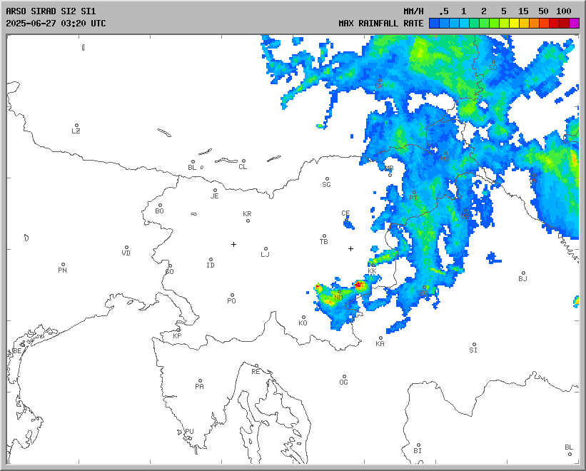 Vremenska napoved za 27.06.2025 ob 12:00