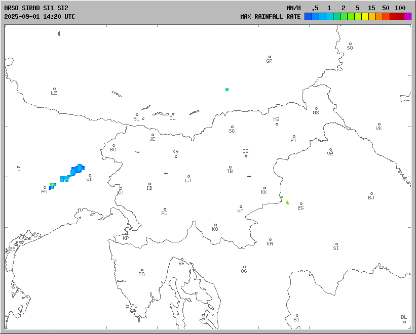 Ponoči bo na vzhodu delno jasno, drugod se bo postopno pooblačilo, veter se bo umiril. Zjutraj se bodo na zahodu začele pojavljati plohe in nevihte. Najnižje jutranje temperature bodo od 12 do 17, ob morju okoli 20 °C. Jutri bo v zahodni polovici Slovenije spremenljivo do pretežno oblačno. Plohe in nevihte se bodo od zahoda širile nad osrednjo Slovenijo, vzhodneje pa bodo manj verjetne. Tam bo tudi več sonca. Ponekod bo pihal veter južne do zahodne smeri. Najvišje dnevne temperature bodo od 21 do 28, v severozahodnih krajih okoli 19 °C.