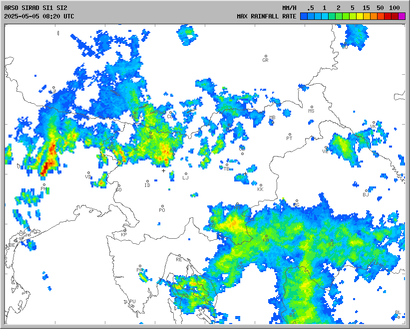 Popoldne bo oblačno z občasnimi krajevnimi padavinami, deloma nevihtami, ki bodo bolj pogoste v zahodni polovici Slovenije. Krajevno bodo možni močnejši nalivi. V vzhodnih krajih bo pihal severovzhodnik, drugod južni veter, ob morju jugo. Najvišje dnevne temperature bodo od 13 do 20, ob morju do 22 ˚C. Jutri bo pretežno oblačno, občasno bodo še krajevne padavine, deloma nevihte, ki bodo verjetnejše v zahodnih, južnih in deloma osrednjih krajih. Pihal bo veter vzhodnih smeri. Najnižje jutranje temperature bodo od 7 do 12, ob morju 14, najvišje dnevne od 12 do 16, na Primorskem do 18 ˚C.